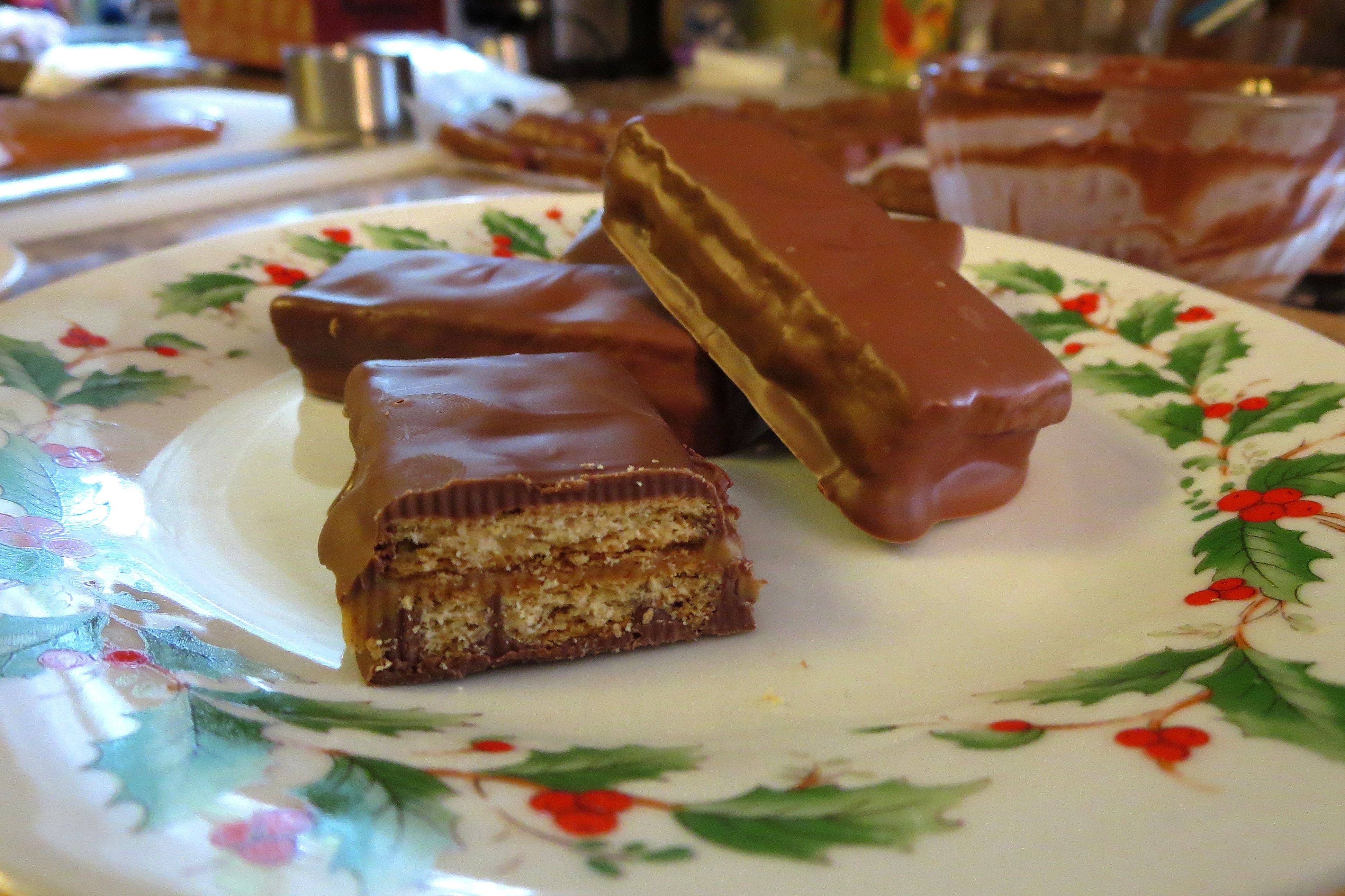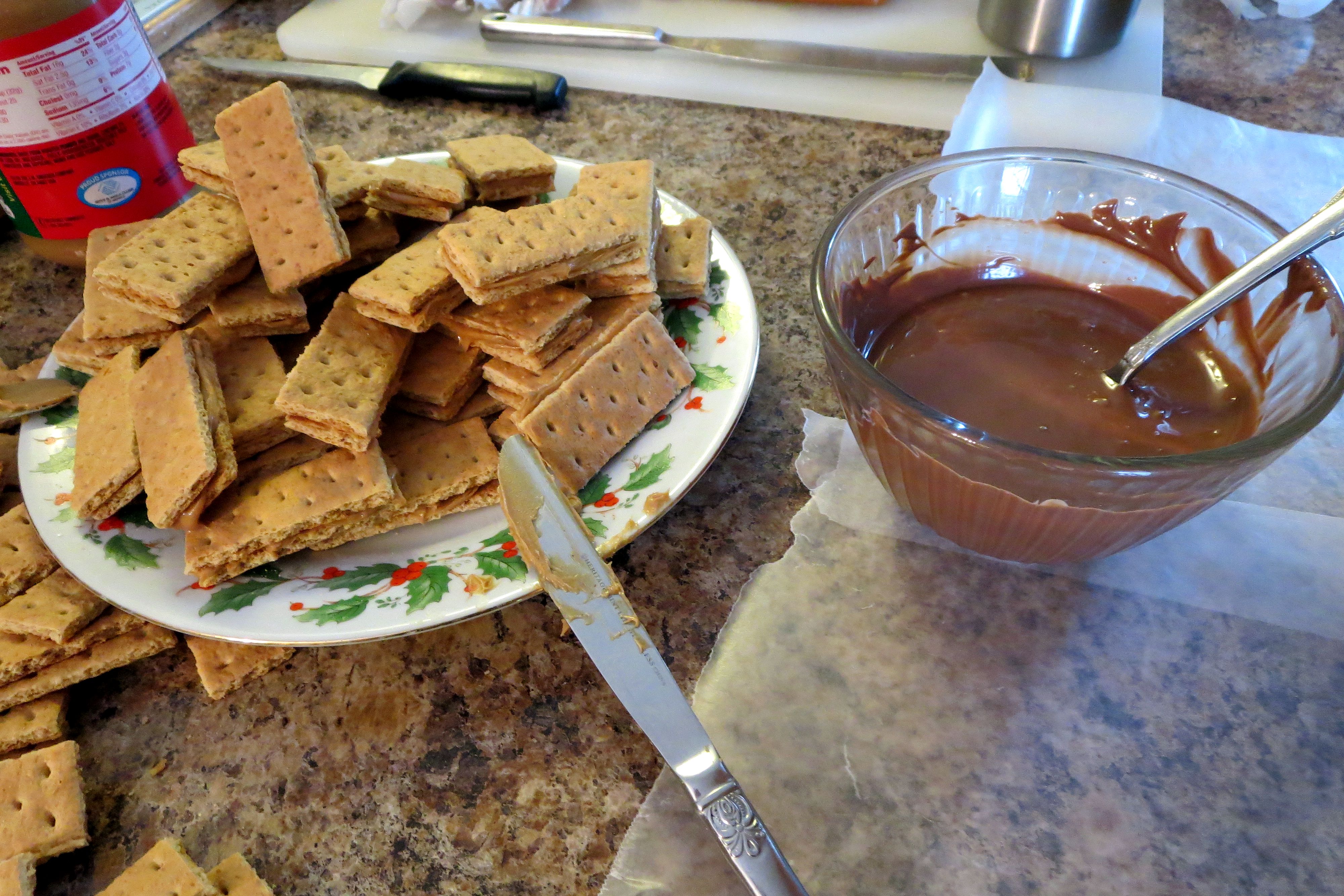 - Lay the chocolate covered graham cracker on wax paper and allow to set.