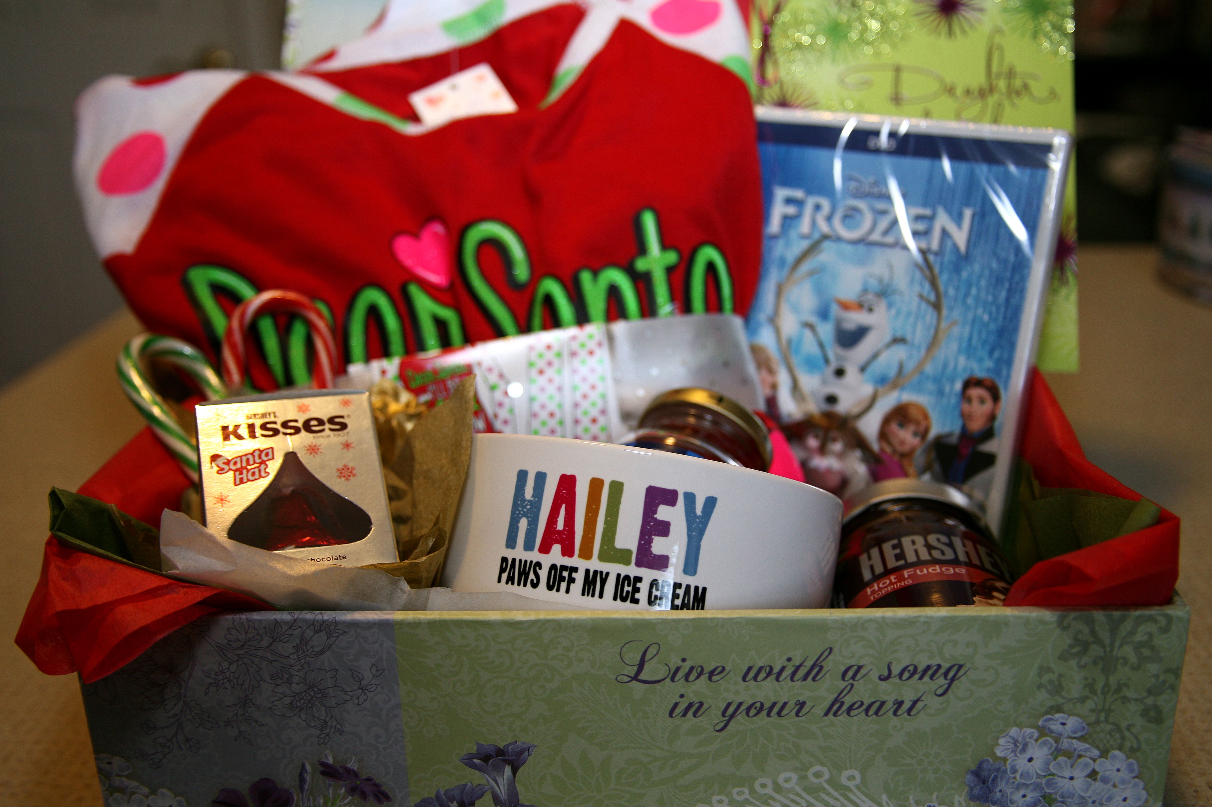 Traditions are my favorite! This will be the third year for my step daughter’s Christmas Eve gift! If you want to see 2013’s gift, check out my previous Christmas post! This gift is not a lot, but it’s always the essentials for a fun family Christmas Eve night…new pajamas, a movie, some yummy treats and a personalized item! I put the gift under the tree a couple days early and her excitement and anticipation grows! Today she asked me “what time is it?” at least 3 or 4 times just hoping it was 7:00 🙂