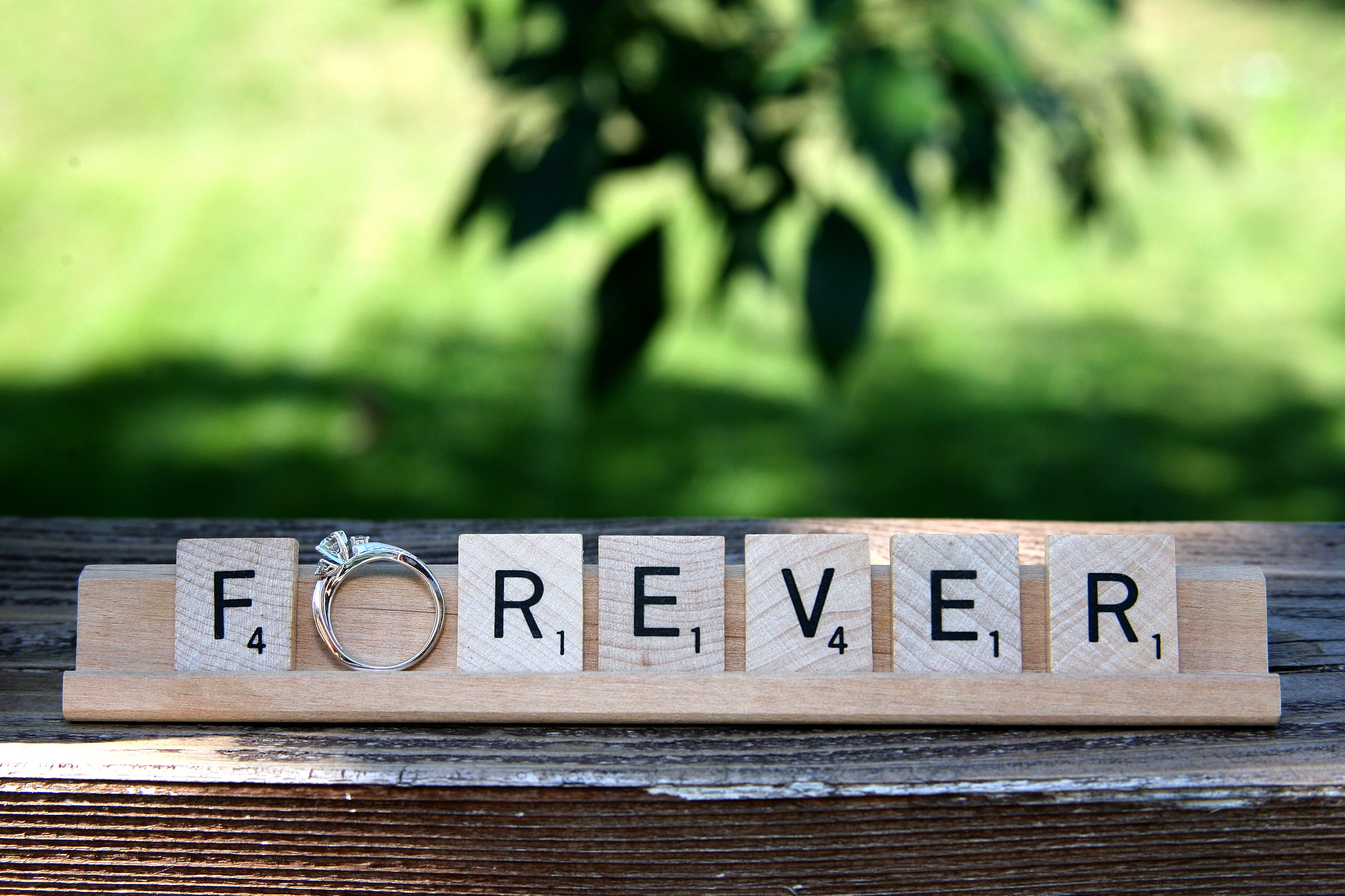 This last photo, also the featured photo of the post, was taken in our backyard. I saw a similar idea on Pinterest using Scrabble letters with your ring to create a word related to love, marriage and/or relationships. I loved the way this one turned out and would like to do a new photo now with both of our wedding rings. P.S. I took all of these photos with the Canon 5D camera and if I remember correctly I simply used the automatic setting with my added flash topped with a dome for a less harsh flash light.