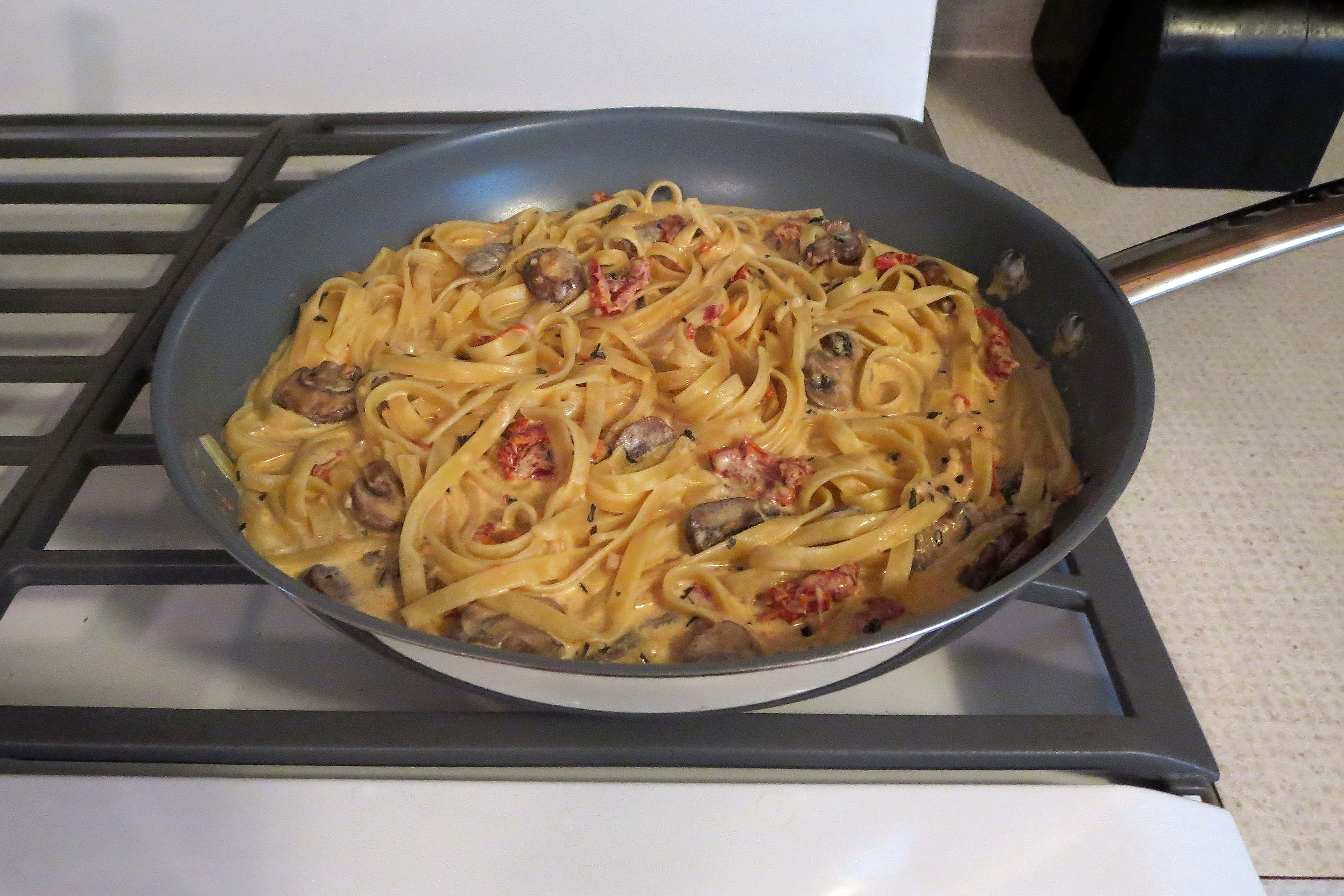 Sun dried tomato & mushroom pasta in a garlic basil sauce