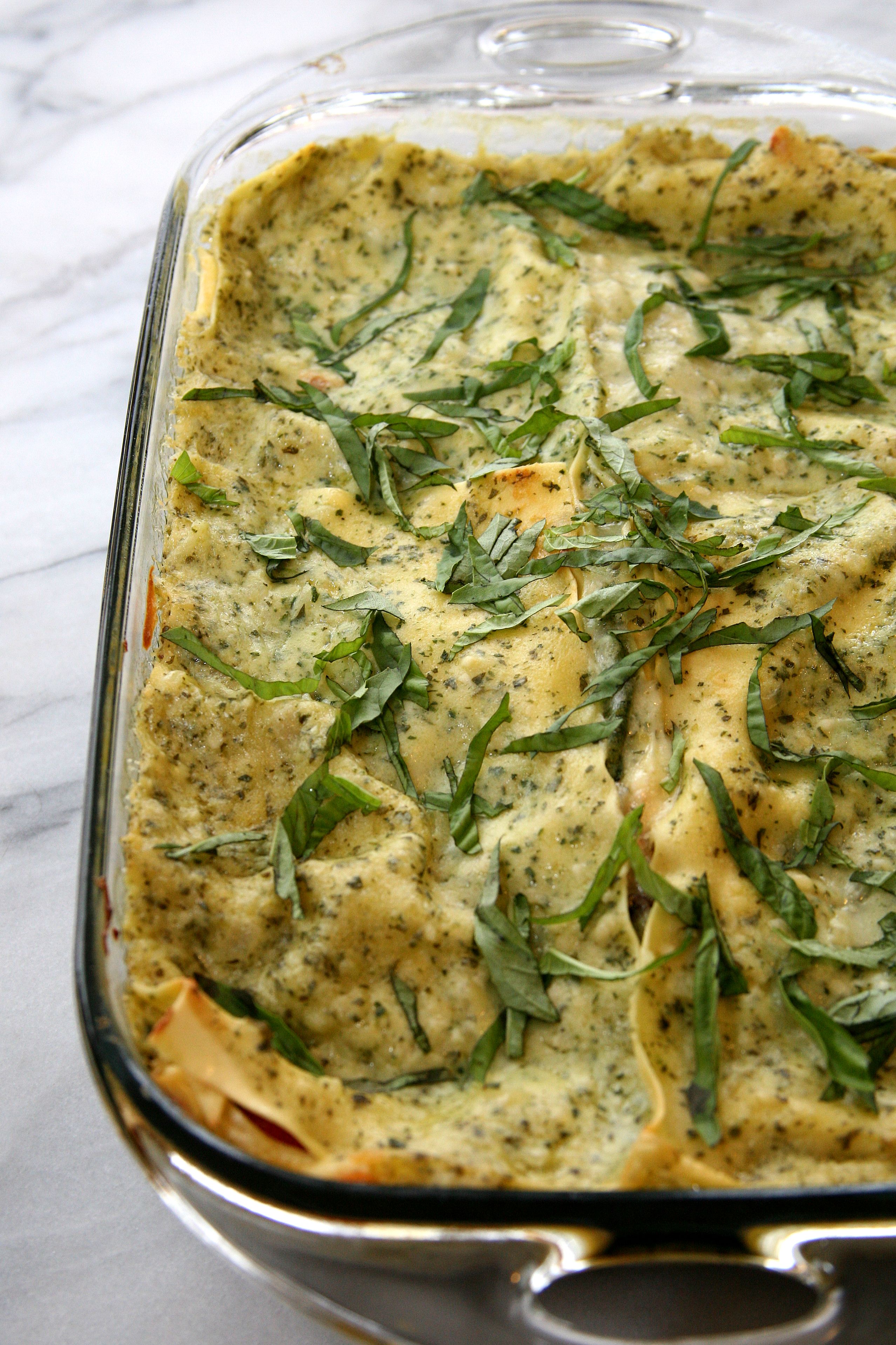 My best advice for making this with ease is to set up stations, pre-measure what you can and clean up as you go. Oh! and print out the recipe so you don’t have to keep waking up your computer and scrolling down the page! The instructions are broken down into different parts: the puree, ricotta cheese, the spinach, the sauce, the vegetables and the lasagne assembly. I certainly still had a messy kitchen by the end, but attempting to stay organized and a little ahead of that mess along the way helps significantly! I didn’t take any photos while I cooked this time, because I felt like I had enough on my plate and wanted to focus on the cooking; hopefully the instructions listed below will paint a clear picture for you! If you have questions for me, ask away π I’m going to write this recipe in a slightly different format by putting the ingredients and instructions together for each ‘piece of the puzzle’. Stay with me on this one and happy cooking!