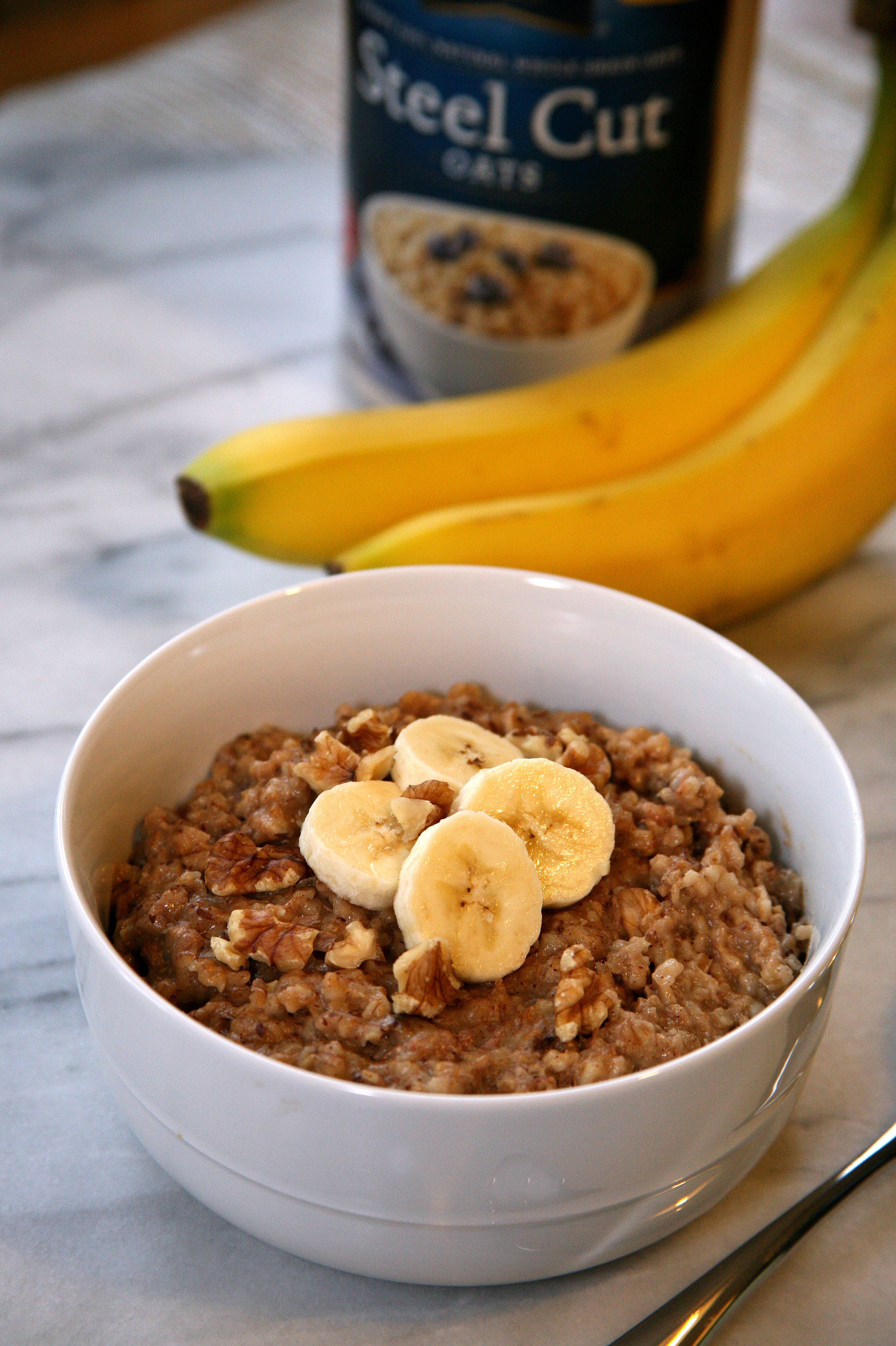 In addition to the scent of spices and taste of comfort, banana walnut oatmeal is a breakfast you can feel good about eating! Oatmeal in general can help reduce your risk of heart disease, aid in preventing diabetes and assist in blood pressure control. (Please note key words in bold text!) Add some healthy fruit, seeds and nuts to that equation too and your day is off to a great start! If you have a crockpot with the ability to automatically switch from ‘low heat’ to ‘keep warm’, you can even mix everything together before heading to bed and have breakfast ready when you wake up; I promise the smell will make getting out of bed easier! Oh wait…did I just knock another reason off your list for skipping breakfast? Oops π