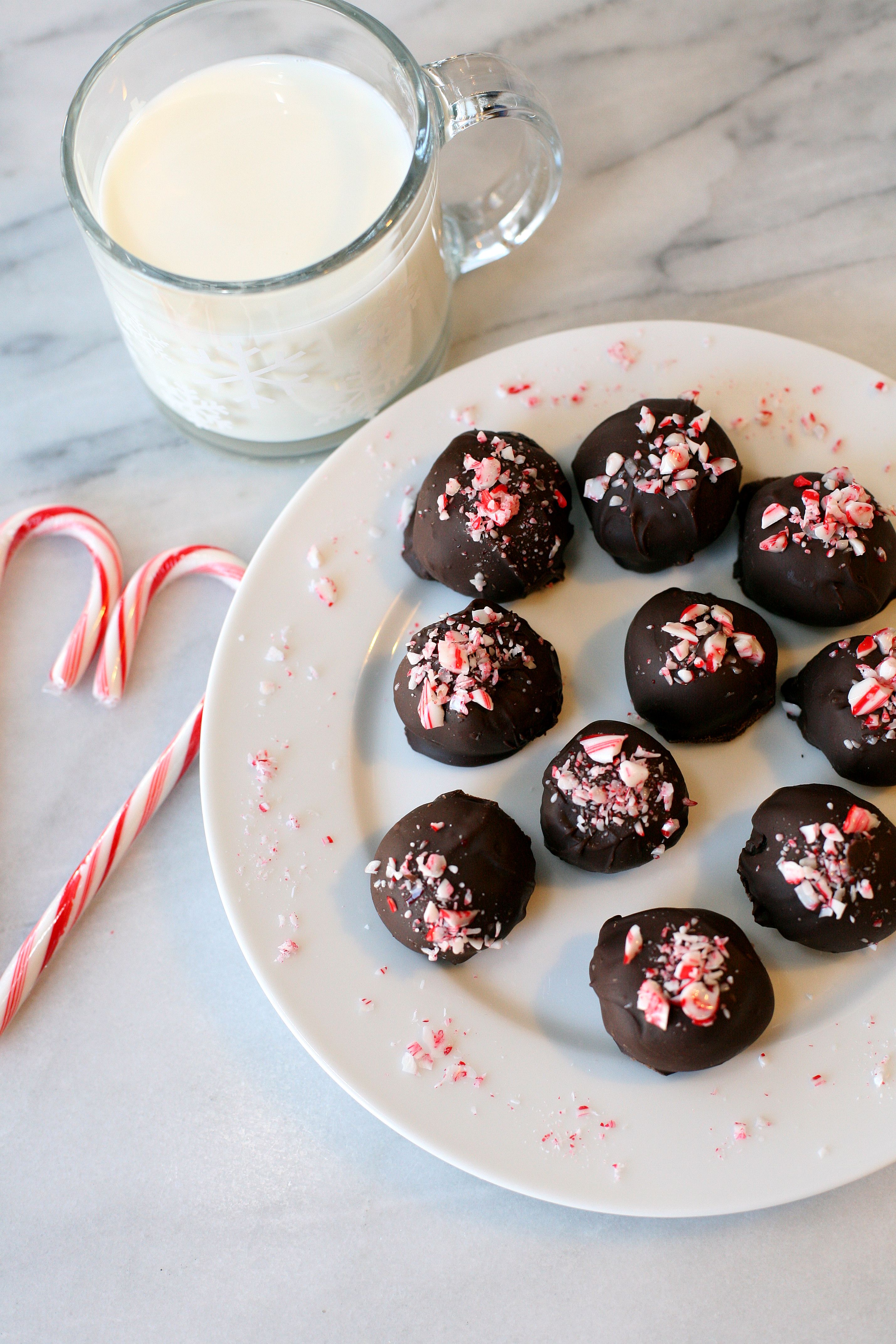 If you haven’t tried the chocolate/peppermint combination yet, I really recommend it. The two go together perfectly as I discovered last year while making these easy candy cane marshmallows! The truffles have a delicious rich and creamy center under the candy cane topped chocolate. Cute and bite sized make them an ideal addition to party table spreads. And as a no bake dessert, they are incredibly simple to whip up ahead of time allowing you to have them ready to go the day before your party! I plan to freeze a few of ours and expect them to be just fine; I’ll be sure to check back and let you know the results. Until then, happy ‘no-baking’!