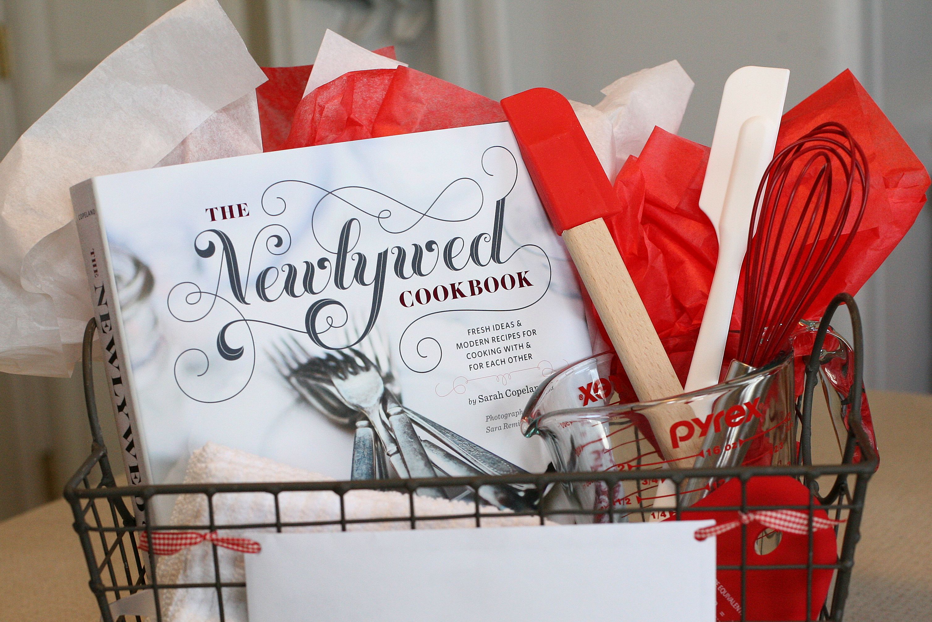 I’m not very good at sticking to the registry when it comes to gifts, but I did manage to purchase one measuring cup from her registry! Luckily, we both share a love for creativity over registry shopping. Reason 4,321 we’re best friends. The rest of the kitchen goodies came from my favorite store in town, Crate and Barrel, and the cute wire basket was a steal from Michael’s Craft Store ringing in at $10! If you’re looking for a cute cookbook for newlyweds, I highly recommend the one pictured below. It’s a heavy, thick book filled with an array recipes in fun categories like ‘Supper’, ‘Date Night’ and ‘Embellishments’ (snacks, sauces and sips to enlighten the table). I wouldn’t mind having this cookbook in our kitchen as well, but buying it for myself as my husband and I embark on our third year of marriage takes a bit of the fun out of it. Perhaps they’ll come out with a sequel for ‘old married couples’ filled with recipes titled ‘I don’t know’ and ‘nothing in particular’ as these are the typical responses from the Mr. when asking “what sounds good for dinner?” These answers are no help to what sometimes feels like the toughest decision of the day. Yes, you may insert the catch phrase ‘first world problems’ here 🙂