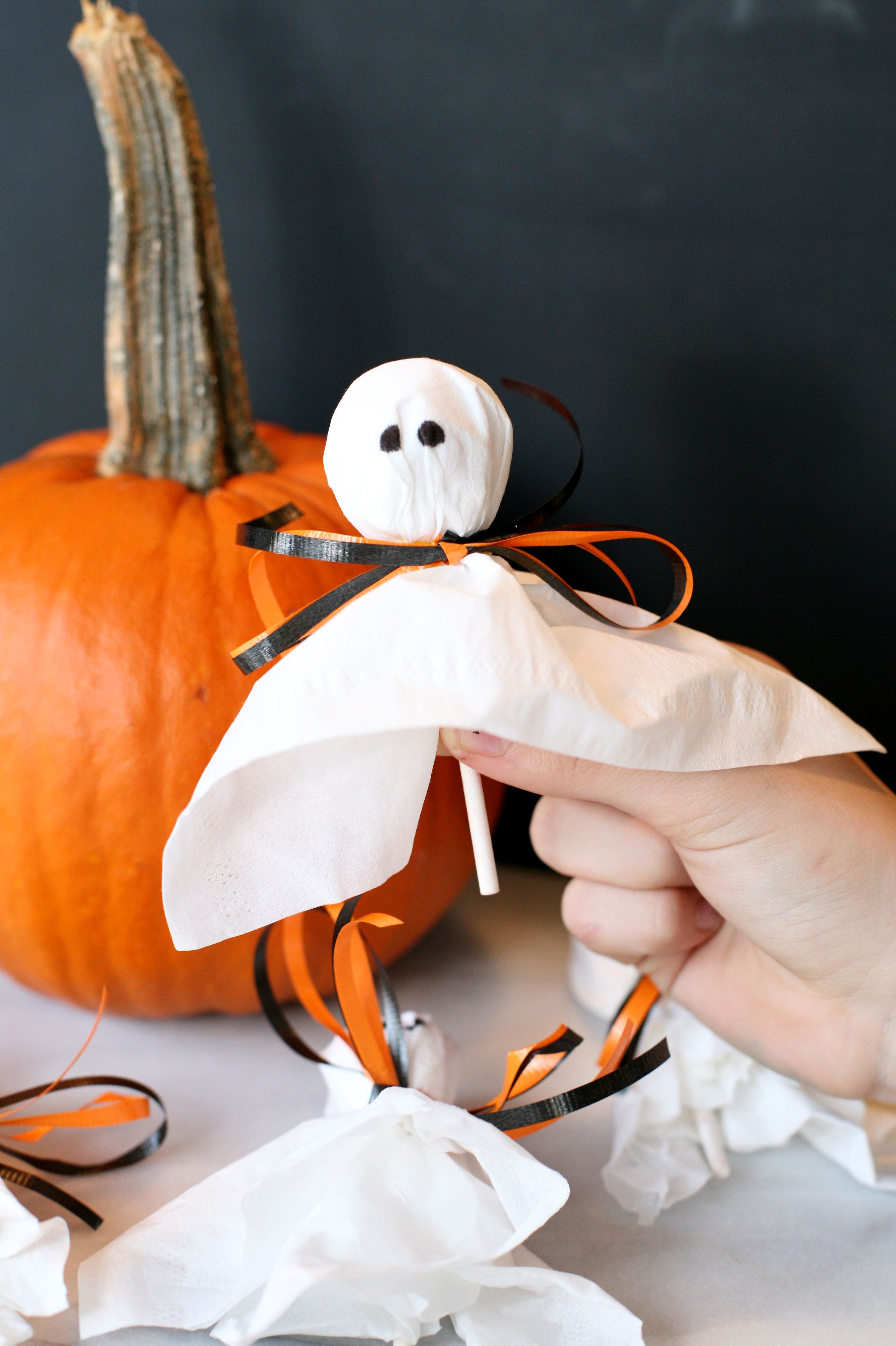 I’ll admit these ghosts might not be scary after all, but they are definitely cute and the little kids who came trick or treating loved them! Especially the ghost buster who came to our house 🙂 See below for a quick recap to make your own ghosts!